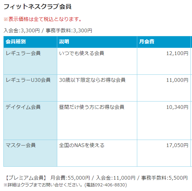 スポーツクラブNAS六本松(料金)